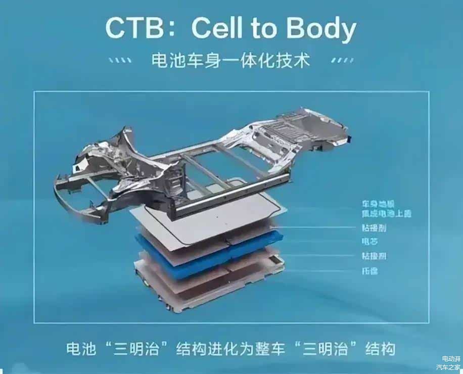 如CTP技术(电池车身一体化),通过取消模组设计,直接将电芯集成为电池包,电池包又作为整车结构件的一部分集成到车身地板上,以此获得更大的能量密度,实现节能降耗的效果。