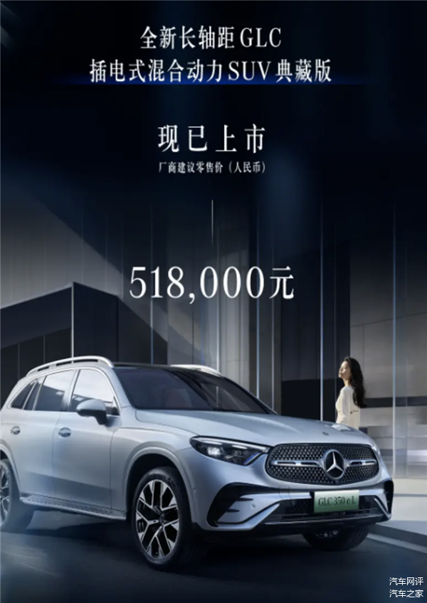 12月19日,梅赛德斯-奔驰正式推出GLC 350 e L 4MATIC插电式混合动力SUV典藏版,厂商建议零售价为51.8万元。新车搭载了奔驰第4代插电式混合动力技术,采用了2.0T发动机与永磁同步电机组成的动力系统,在WLTC工况下可实现纯电续航115公里,提供出色的电动驾驶体验。