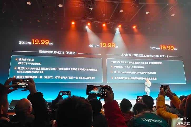 iCAR V23的这场冗长的发布会貌似面面俱到,而实际上没有重点,iCAR汽车首席产品官苏峻要不就是读参数,要不就是教育年轻人,他自己倒是嗨了,也不想想他口中的年轻人们还有没有耐心等你讲完。发布会过程中,巨幅背景板上的PPT还把车价搞错了,三个车型都赫然打出了19.99万元的售价。时长超过2个小时的发布会,因为过于沉闷很多人提前离场,搞笑的是,可能是因为时间过长,苏峻讲到遥控器都没电了,公布价格的时候需要后台配合才能完成。在直播上市发布会的时候,主播以现场网速太卡的理由还关闭了评论。
