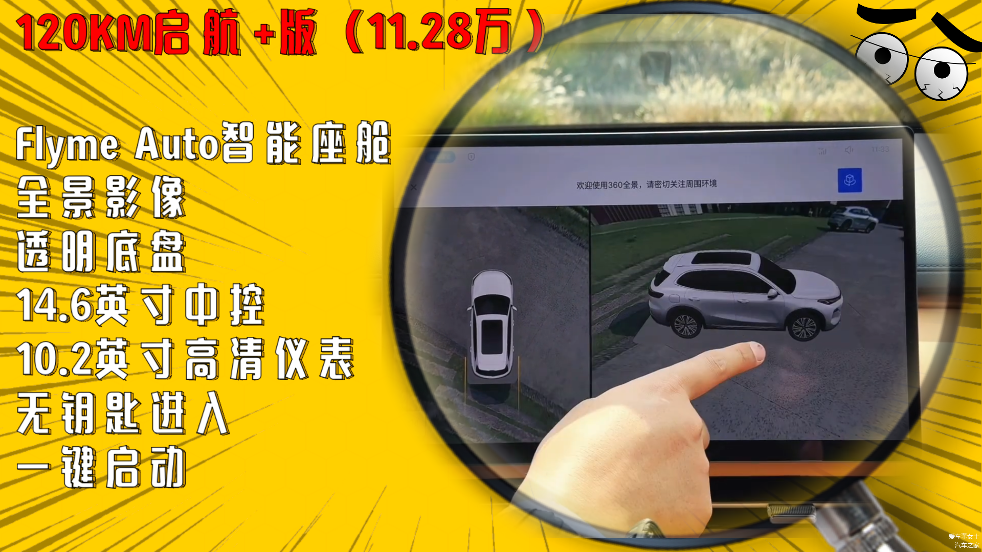 那么接下来,咱再看三个长续航版。首先是启航+版,这个版本配备了18寸轮毂、 LED灯组、全景天窗(限时赠送)、外后视镜电动折叠和加热、皮质打孔座椅、主驾座椅六向电动调节、后排出风口、16个扬声器(限时赠送)、 Flyme Auto的智能座舱、全景影像和透明底盘、14.6英寸中控和10.2英寸高清仪表、还有无钥匙进入、一键启动等功能。可以看出舒适性配置是够用了,但是主流的安全配置,例如L2级驾驶辅助是没有的。