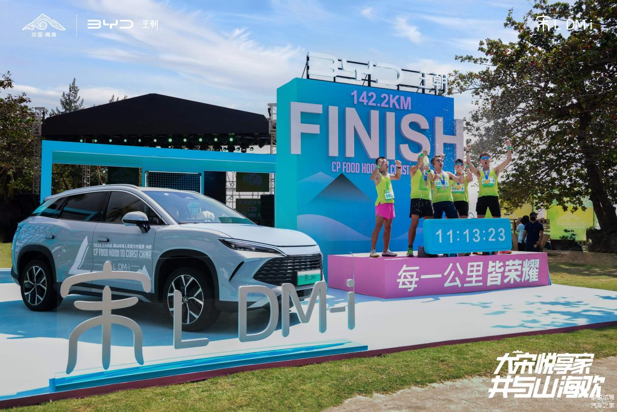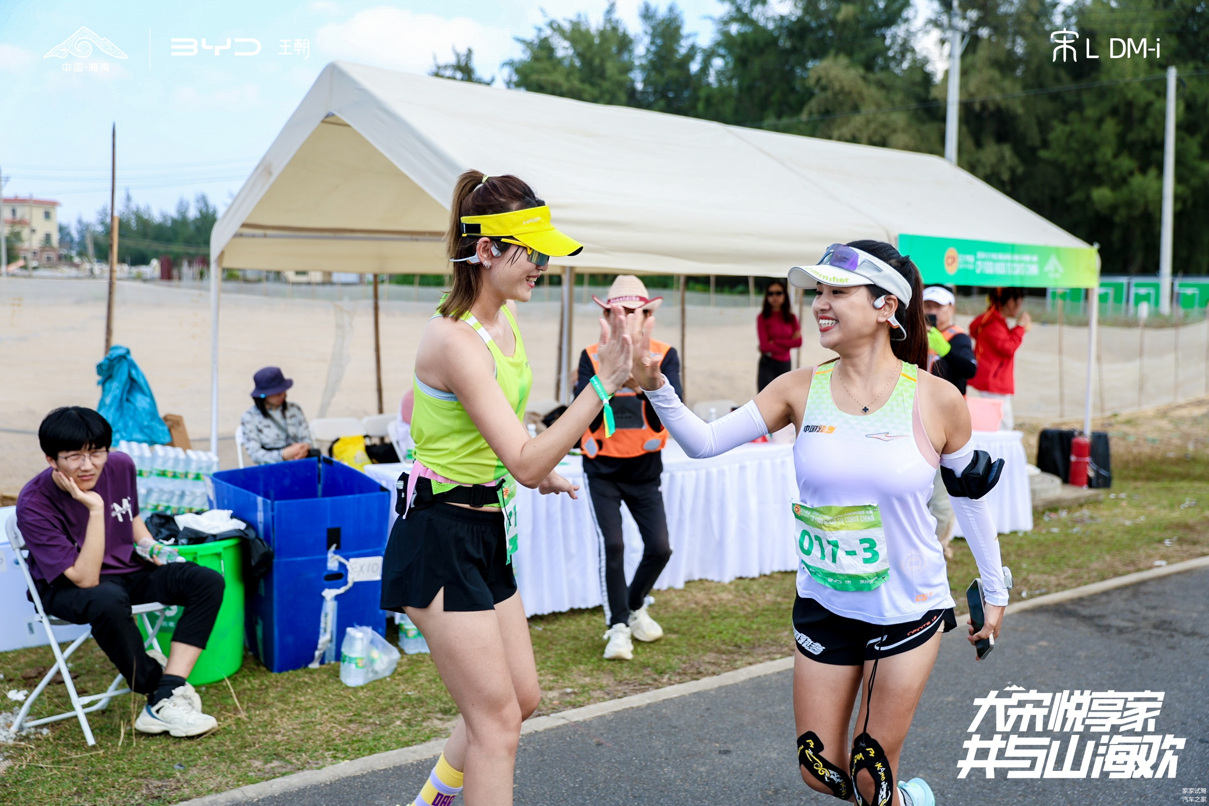 为了表达对参赛选手们的敬意和感谢,比亚迪王朝特意在小海龙舟停车区设置了冠名展台,跑到这个点位的选手们都可以获得比亚迪王朝冠名的悦享山海奖牌,成为这段非凡旅程独一无二的见证。