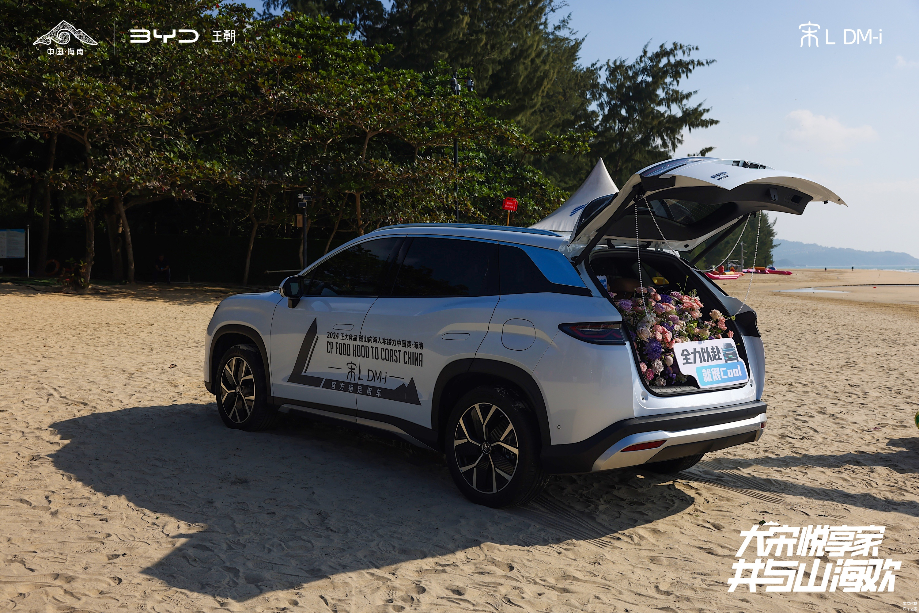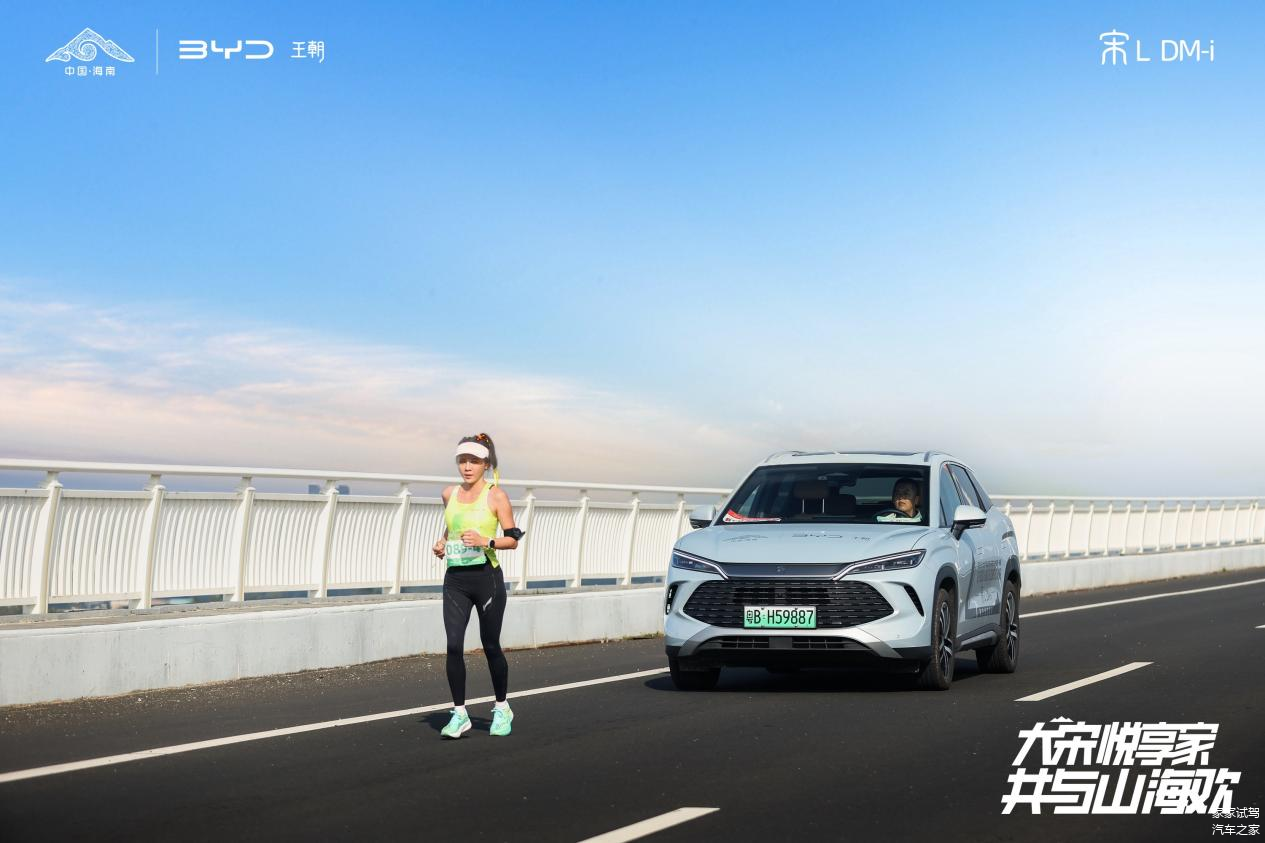 然而,无论是“越山”还是“向海”,其过程都需要强大的支持。今年,比亚迪王朝网成为了越山向海人车接力赛的金牌合作伙伴,与来自全国各地的跑者一起奔赴热爱。在今年上半年,宋L EV经过了张家口站群山的检验后,比亚迪王朝再次启程向海,派出家族中的最新成员: 宋L DM-i(图片 | 参数 | 询价)作为海南站的比赛用车,投入大海的怀抱。