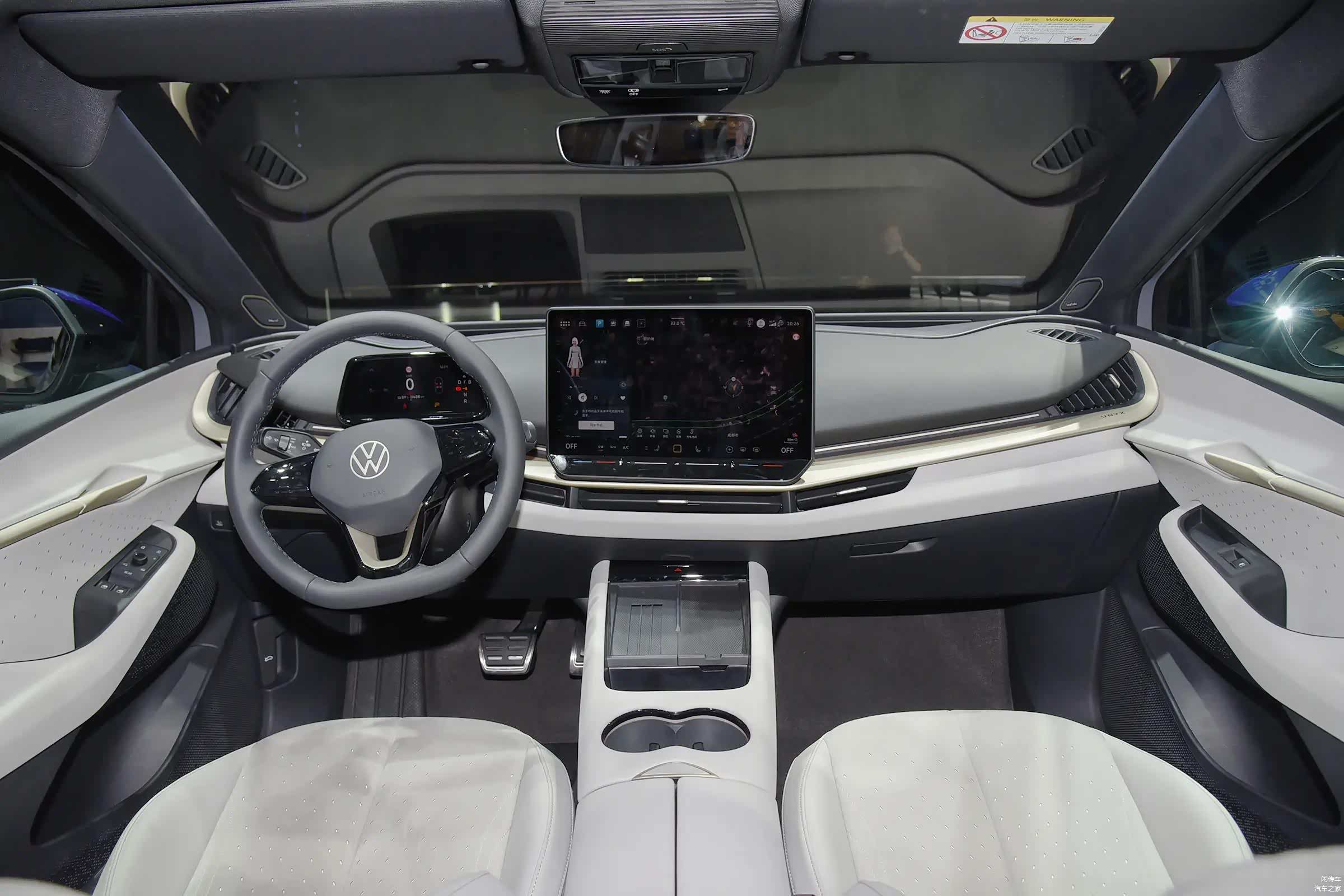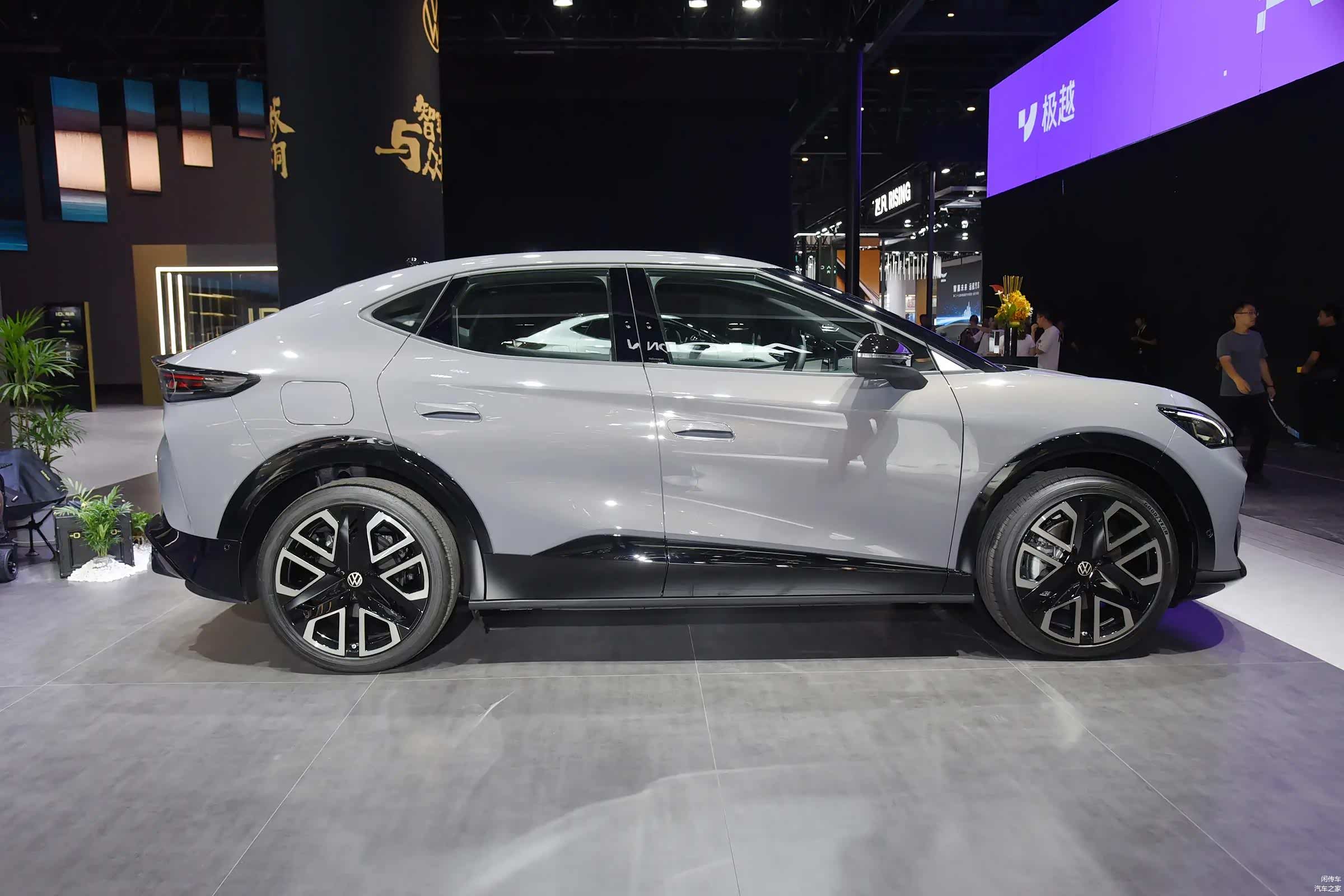 具体来看,前脸部分大众车标下方有着贯穿式的灯带,连接了左右两侧扁平的大灯组,三角形的轮廓内部有着三角形的细节进行补充,有着出色的辨识度,前保险杠部分则有着笑脸式的布局,依旧是三段镂空,但两侧加入了夸张的翘起黑色装饰进行补充,增强了个性的感觉。车身侧面,新车则有着比ID.4或是ID.5更加流畅动感的线条,A柱现在角度极大引出了下坠的车顶,动感的腰线是大众旗下车型中少有的设计,隐藏式车门把手当然不会缺席。