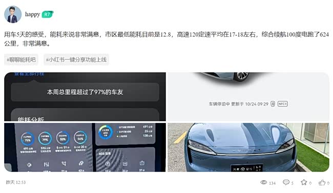 智界R7电耗表现惊艳 同级最低12.5kWh百公里电耗