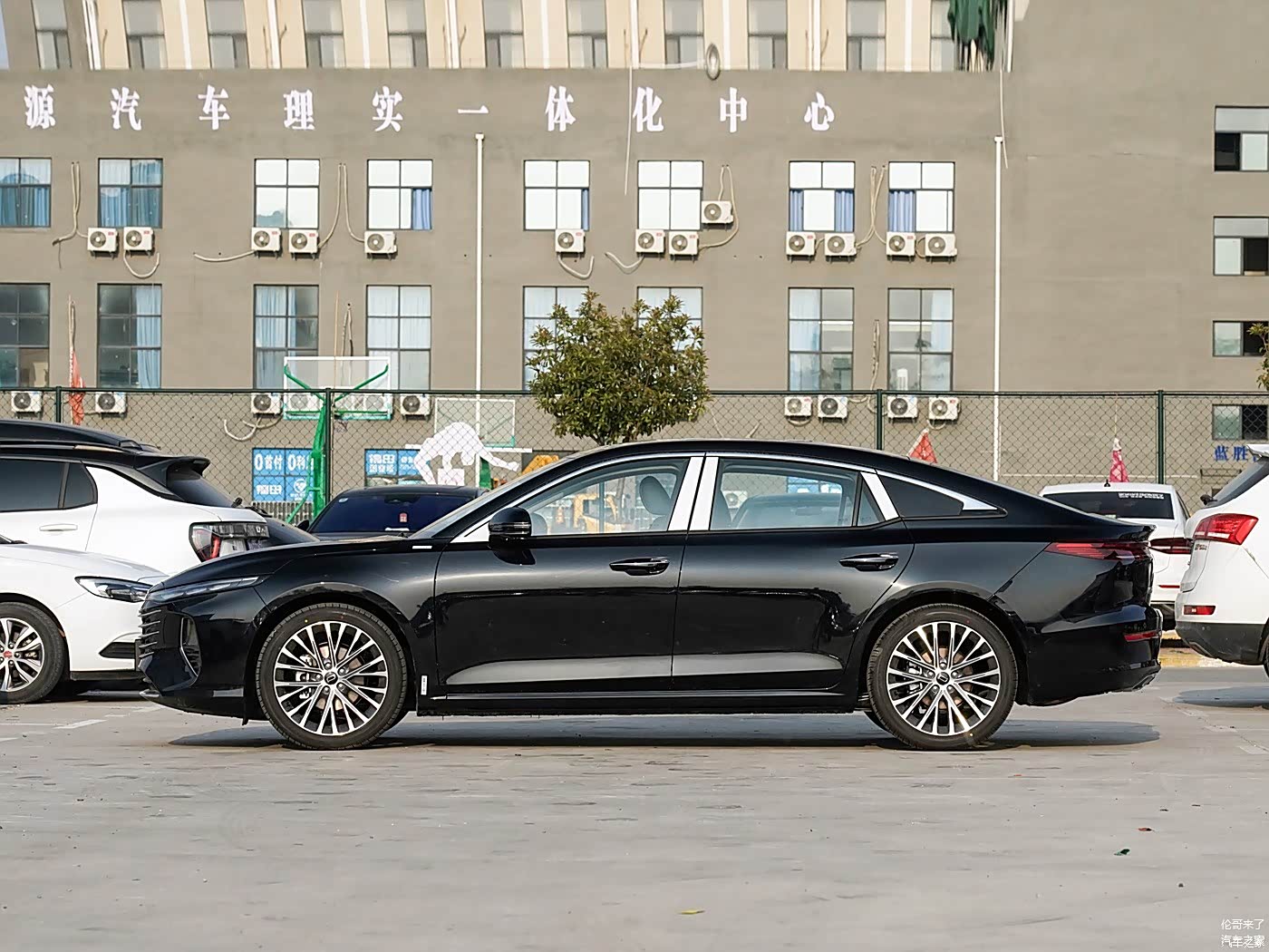 车辆的侧面设计呈现出修长且略显低矮的形态,特别是明显下滑的溜背式轿跑定位,为新车增添了浓厚的运动气息。下方的新车配备了19英寸的多辐轮圈和红色的制动卡钳,这不仅展示了中型轿车的稳重特质,同时也不失其运动感和时尚感,使得整车看起来更加动感十足。在车身尺寸上,其长、宽、高的比例分别是:4810/1840/1455mm,而轴距达到了2800毫米。车身的大尺寸设计为车内提供了宽敞的空间,使得乘客的舒适度相当高。