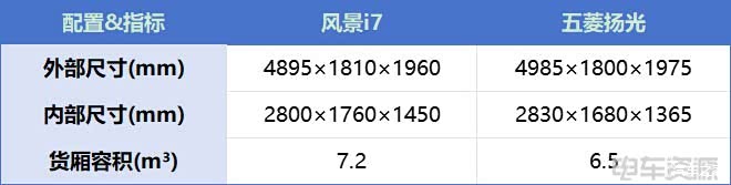 尽管福田风景i7与五菱扬光拥有相同的整车长度,福田风景i7的货厢容积却更为宽敞。