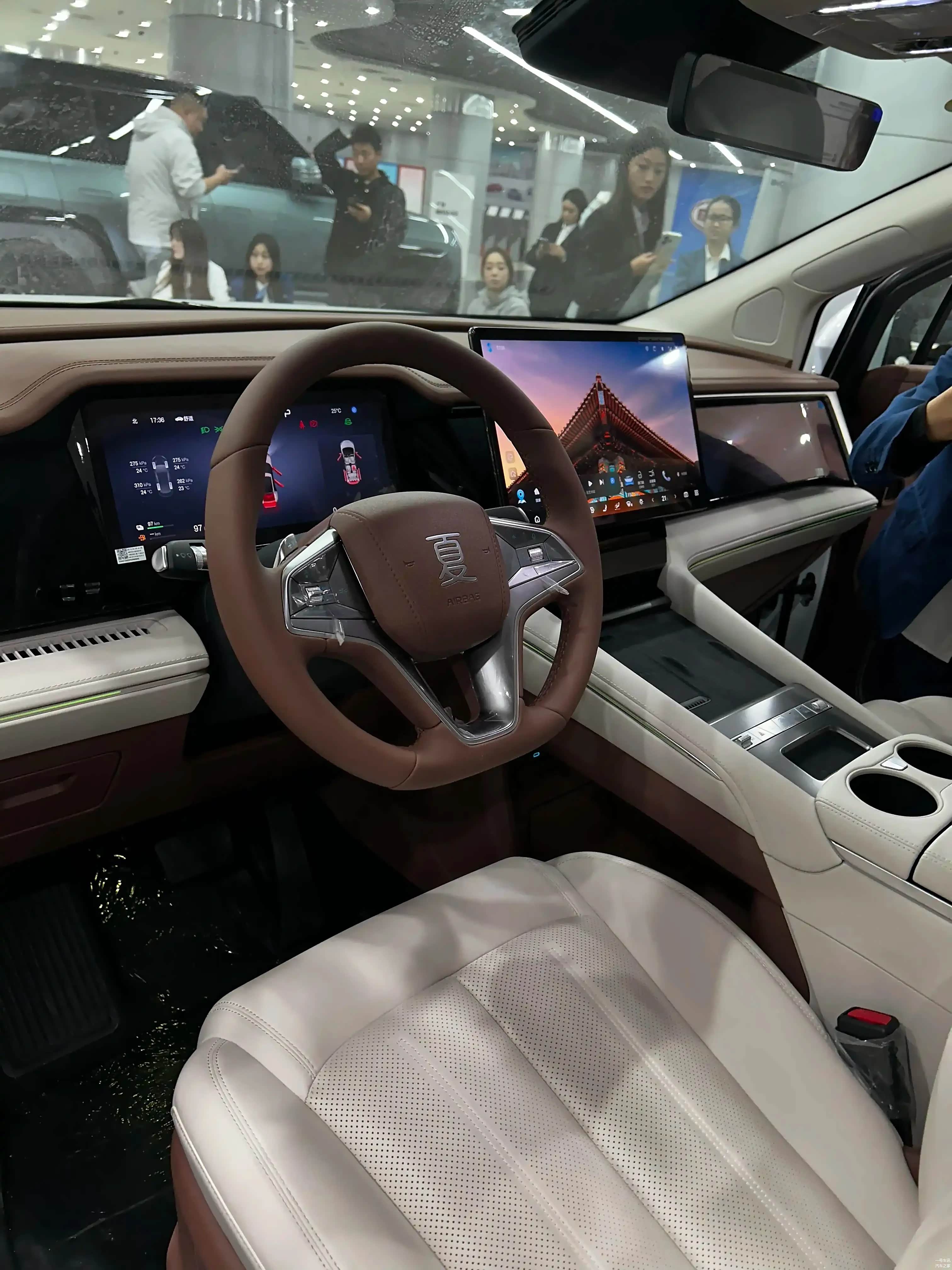车辆的内饰设计巧妙地结合了远山黛与润米、绾棕与润米这两种独特的颜色组合,并融入了最新的家族化设计元素。在车内中央区域采用了黑色拉丝装饰条以及银色金属饰件进行点缀,整体看起来显得非常时尚大气。以15.6英寸的悬浮式中控屏为核心,中控台的“T”字形两侧分别嵌入了12.3英寸的全液晶仪表盘和副驾娱乐屏,营造出浓厚的科技氛围。此外,在内饰上,采用了具有金属质感的真皮材料制成的皮革座椅,以及带有金属光泽的饰板装饰件,让车内显得更加豪华大气。此外,这款车还配备了DiLink 150的高级驾驶舱,并且“天神之眼”的高级智能驾驶系统也是齐全的,包括高速导航和自动停车等多种功能。此外,该款设备还可以通过车载蓝牙连接智能手机,实现远程操控。此外,这个设备还搭载了三幅式方向盘和电子怀挡,并提供了50W的手机无线充电选项,同时还配备了128色氛围灯等高端配置。