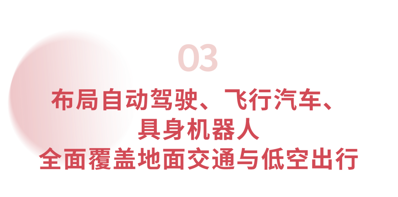 同时,广汽集团正加快布局从私人出行到共享出行、个体出行到群体出行、陆地出行到低空出行的全场景、立体化出行模式。2024年12月已正式发布飞行汽车品牌GOVY高域及首款复合翼飞行汽车GOVY AirJet,航程超200公里,并支持30分钟快充技术,规划2025年布局生产线开启预定;还将搭建Robo-AirTaxi(自动驾驶空中出租车)端到端低空立体出行体系,实现地面交通与低空出行无缝覆盖。