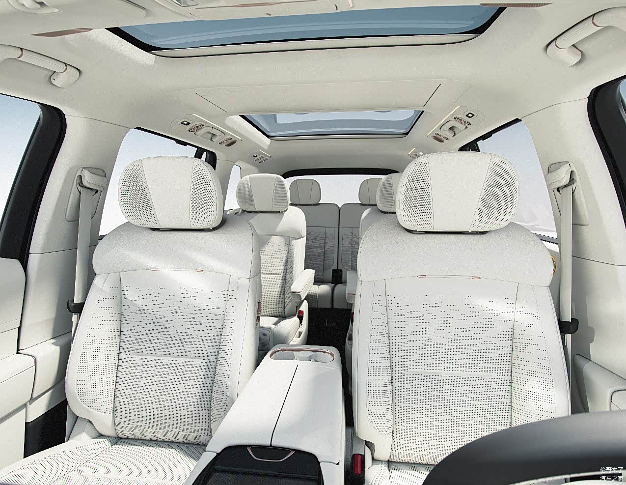 此外,领克900在空间利用上也展现出了超乎想象的创意。其纯平地板设计与问界M9如出一辙,第二排座椅具备550mm的前后调节滑轨以及侧向旋转功能。第三排为两座设计,同样支持四向调节,最大后仰角度可达155度。而125mm的前后调节行程则使得后备箱的最大(标准)容积可达300L。