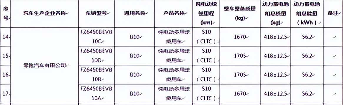 让我们先来谈谈,对于车友来说,续航能力是他们最为关心的。根据工信部提供的申报资料,尽管零跑B10已经申报了四种车型,但其电池容量仅为56.2千瓦时一种。