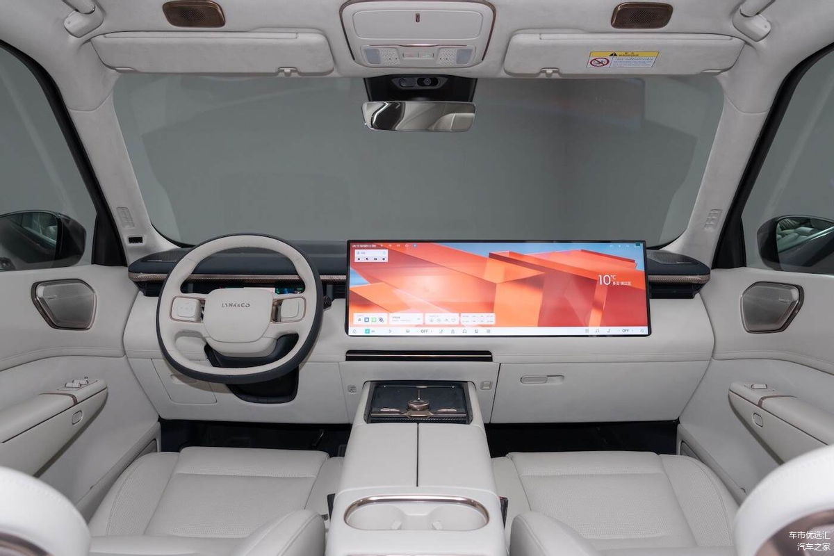 进入到驾驶舱,领克900没有了传统仪表盘,但却采用了嵌入式仪表盘为用户提供更多信息,12.66英寸长条状设计既能提供功能支持,也不影响视野。而且在中控与副驾驶前方,一整块30.0英寸6K一体屏比理想L9的双15.7英寸更显前卫,配合AI交互的RGB氛围灯、智能场景联动,还有仿麂皮材料,豪华的氛围也是一点儿不逊色头部高端新势力。