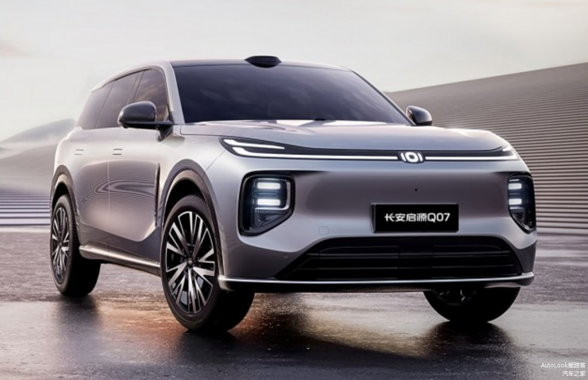 长安启源 Q07 脱胎于全新一代 SDA 平台,定位大五座 SUV,精准对标理想 L6,剑指家庭用户市场。外观设计大气沉稳,家族式的贯穿灯带与可发光品牌 LOGO 相得益彰,展现出强烈的科技质感。车身尺寸为 4837/1920/1690mm,轴距达 2905mm,空间利用合理,后排乘客能拥有宽敞舒适的腿部与头部空间。