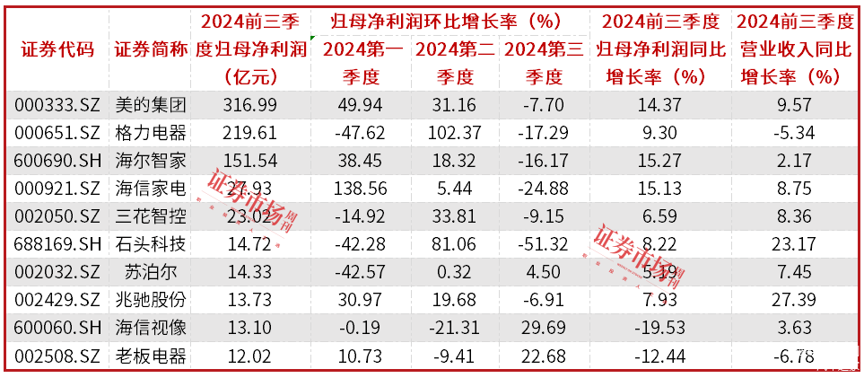 表1 家电行业龙头2024年业绩增长表现