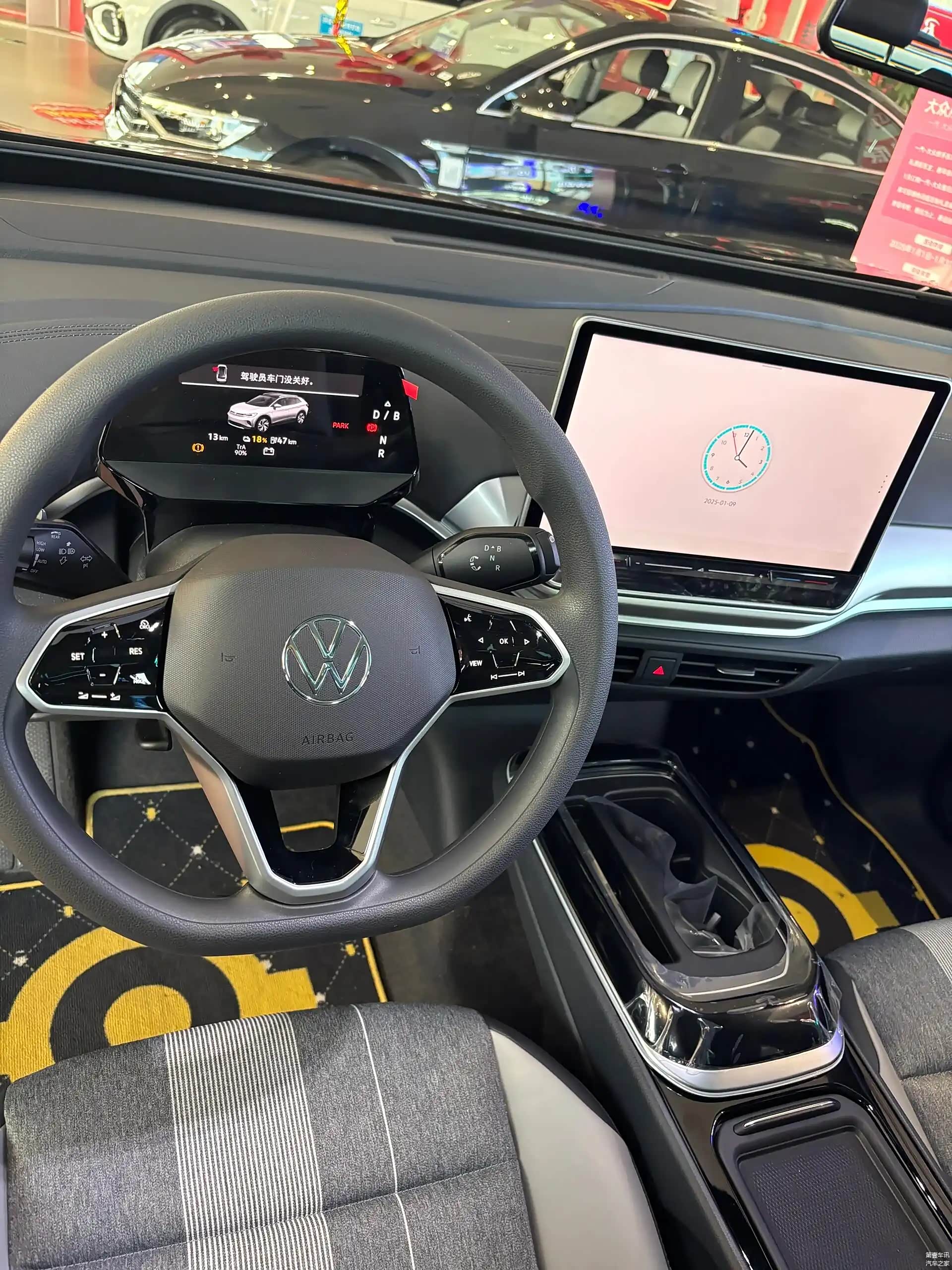 在内饰设计上,我们提供了清新典雅灰、玄彩秘境黑和曜石动感黑三种不同的风格选项。在保留现有环抱式座舱设计的基础上,我们还升级了一个12.9英寸的2K悬浮式中控屏,并配备了全新的ID.S 5.0车机系统。这一系统不仅界面更为简洁,还提供了智能语音交互2.0、智慧在线导航2.0、ID.Mate AI智能管家和手机App远程操控等多项功能。此外,我们还计划对IQ.Drive智驾系统进行升级,加入交互式变道辅助、远程泊车以及记忆泊车等新功能。在25款ID.4 CROZZ中,你还可以观察到全新的怀挡式换挡装置,它的位置从仪表盘的侧面移动到了方向盘的右后方区域。