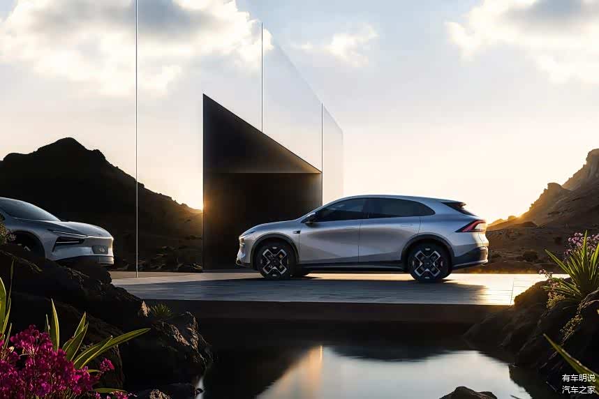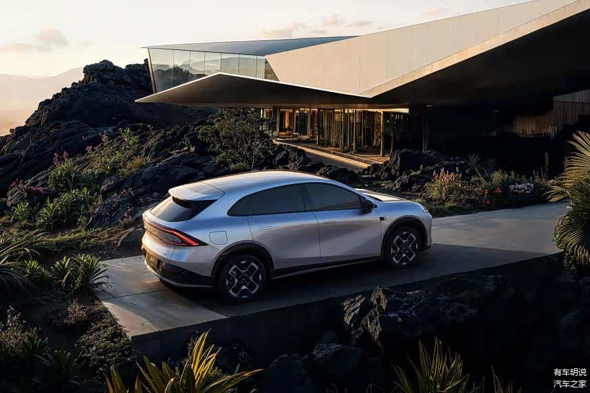 侧面部分,新车通过将偏圆润和犀利的多种线条互相结合,搭配隐藏式门把手等,为车辆在这一部分带来了一定的科技感,配合同为“X”形的轮毂,构成了辨识度较高的轮廓设计。