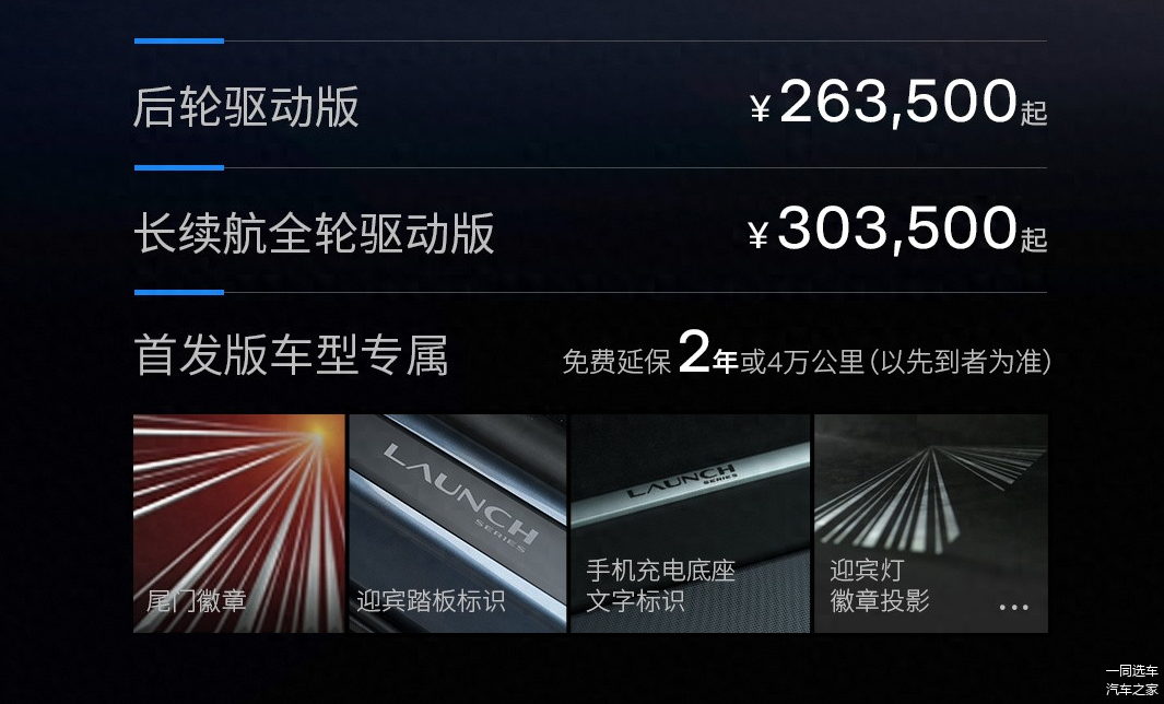 其中,后轮驱动首发版(593km标准续航)26.35万元;全轮驱动首发版(719km长续航)30.35万元。作为参考,现款特斯拉Model Y指导价24.99万元-35.49万元。