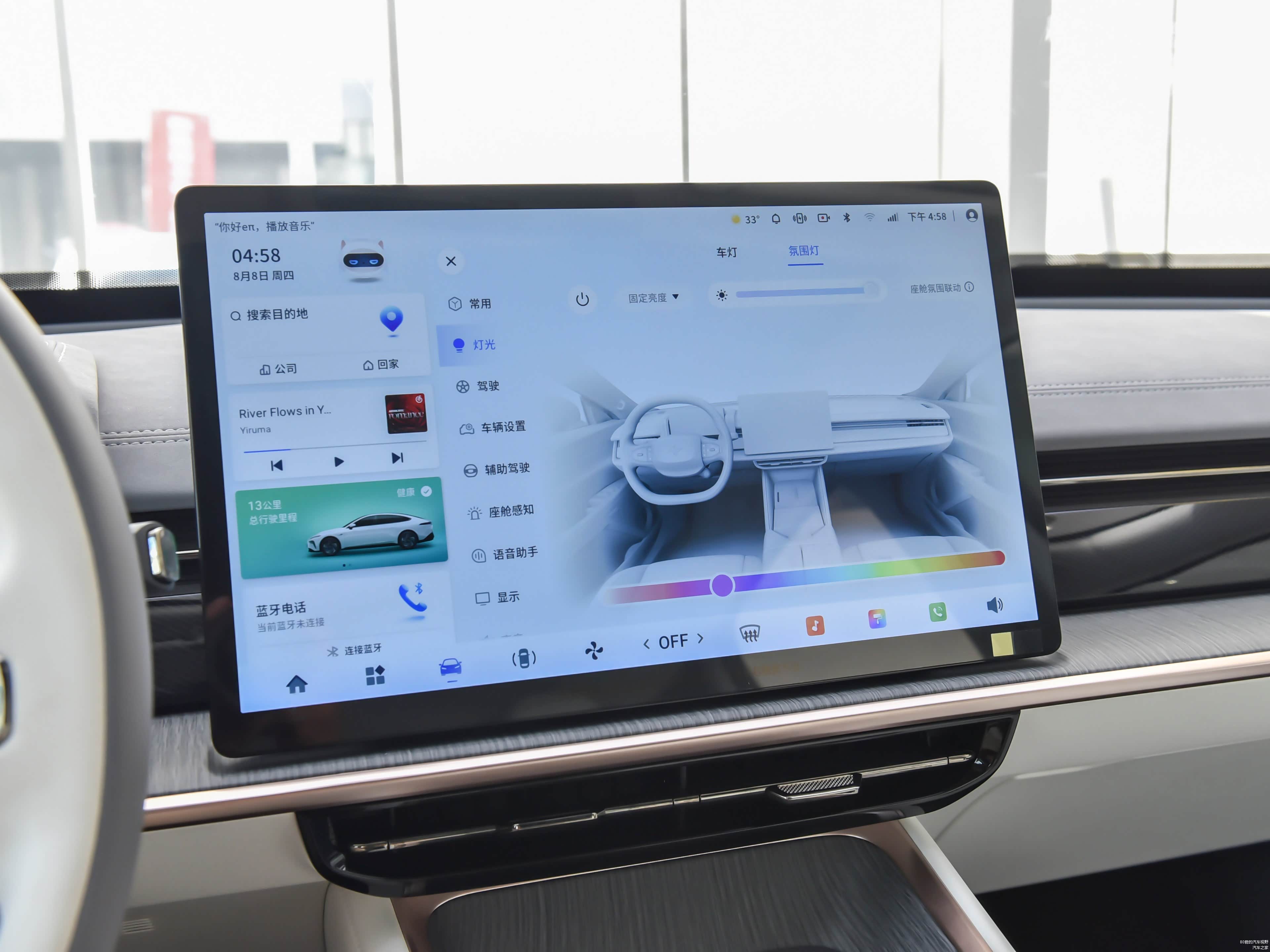 咱们再来聊聊这个音乐律动流光面板,它可是有64种颜色氛围灯哦!亮度还能分10个档次调,跟着音乐的节奏和强度,灯光的亮度和颜色都能同步跟着变,给驾驶和乘坐的人带来超乎想象的视听享受,就像身临其境一样!