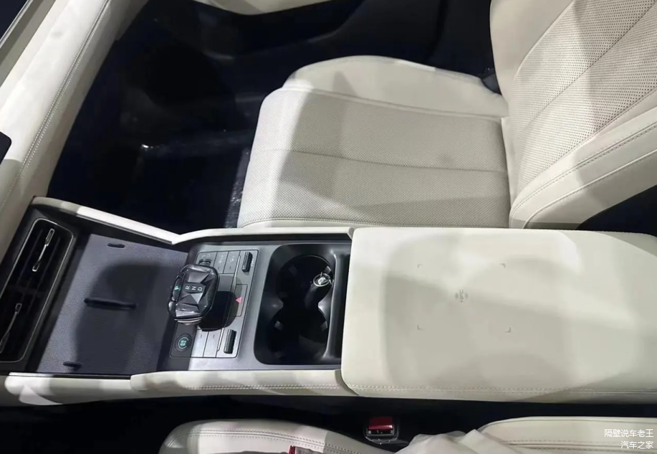 接下来,咱们聊聊内饰。汉L的内饰设计可以说是全面革新,整体风格与比亚迪秦L类似,走的是简约化的路线。中控台采用了悬浮式的中控屏+悬浮式仪表屏的设计,科技感十足。方向盘采用了三辐式设计,握感非常不错。中控台部分预计会采用黑色的漆面装饰,搭配大面积的皮质包裹,整体质感非常出色。电子挡把区域后部保留了物理按键,操作起来更加方便。值得一提的是,汉L的下部提供了一个较大的储物空间,实用性非常强。