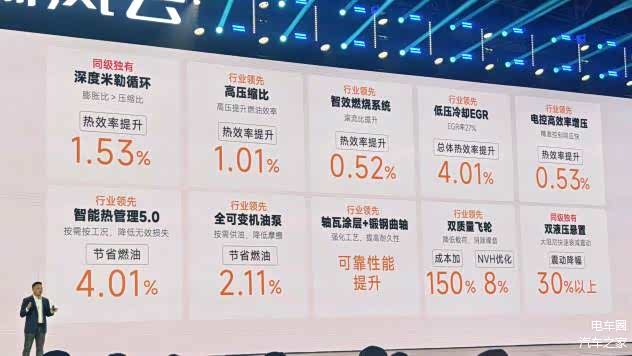 在节能方面,这套动力系统采用深度米勒循环、电控高效率增压、智能热管理5.0等技术,最大热效率44.5%。