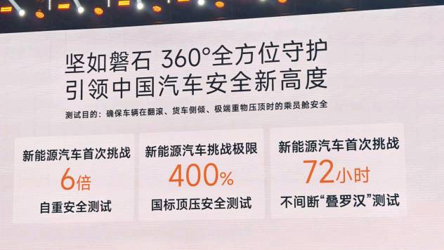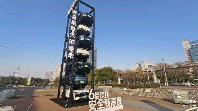 “车塔”造型超过72小时之后,车辆无明显结构变形。这个挑战达到了国标顶压安全测试的4倍。