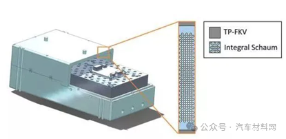 在Fraunhofer LBF开发的一种混合原位工艺可在成本敏感的大容量应用中生产复杂的、功能集成的CFRTP三明治元件。Fraunhofer LBF开发的蓄热材料可用于在乘车前在寒冷天气中对温度敏感的电池进行预处理,并使用隔热的CFRTP夹心外壳使其保持在最佳工作温度。因此,通常可以避免主动温度控制。相反,可以缓解电池在快速充电过程中可能出现的短期、不必要的热量增加。“我们开发的材料、结构和工艺技术为驾驶员提供了更可靠和一致的Bev范围”。此外,在Fraunhofer LBF负责研究项目的Felix Weidmann解释说:“此外,车辆开发人员和设计人员还可以从轻量级结构和功能集成的新工艺技术中获益”。机械和热的要求是由新型CFRTP电池外壳提供的。这是由一个三明治结构的基础上UD磁带面片(UDMAX,SABIC)覆盖一个完整的聚合物泡沫核心。泡沫芯子提供了隔热材料,而面板承担了大部分的负荷。为此,LBF的科学家将UD磁带整合成一种交叉复合材料,并将其预成三维(3D)复合面片。在这些三维面片之间,聚合物泡沫芯体采用一种新的混合原位制造工艺注塑成型。由此产生的三明治结构有几个优点:它提供了高的轻量化潜力,并实现了高比弯曲性能和抗冲击性能。此外,它还提供了针对入侵事件的高级别保护,入侵事件尤其是在电池组中发挥着重要的安全作用。