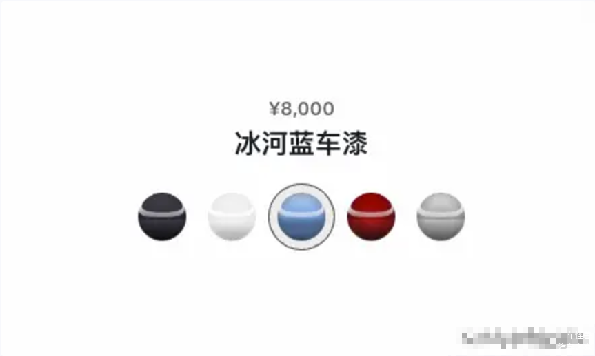 新款Model Y推出了5种不同的车漆选择,摒弃了之前多年使用的黑色车漆。星空灰提供的是免费的车漆,而珍珠白和新增的冰河蓝的选装价格定为8000元,烈焰红和快银的选装价格则是1.2万元。