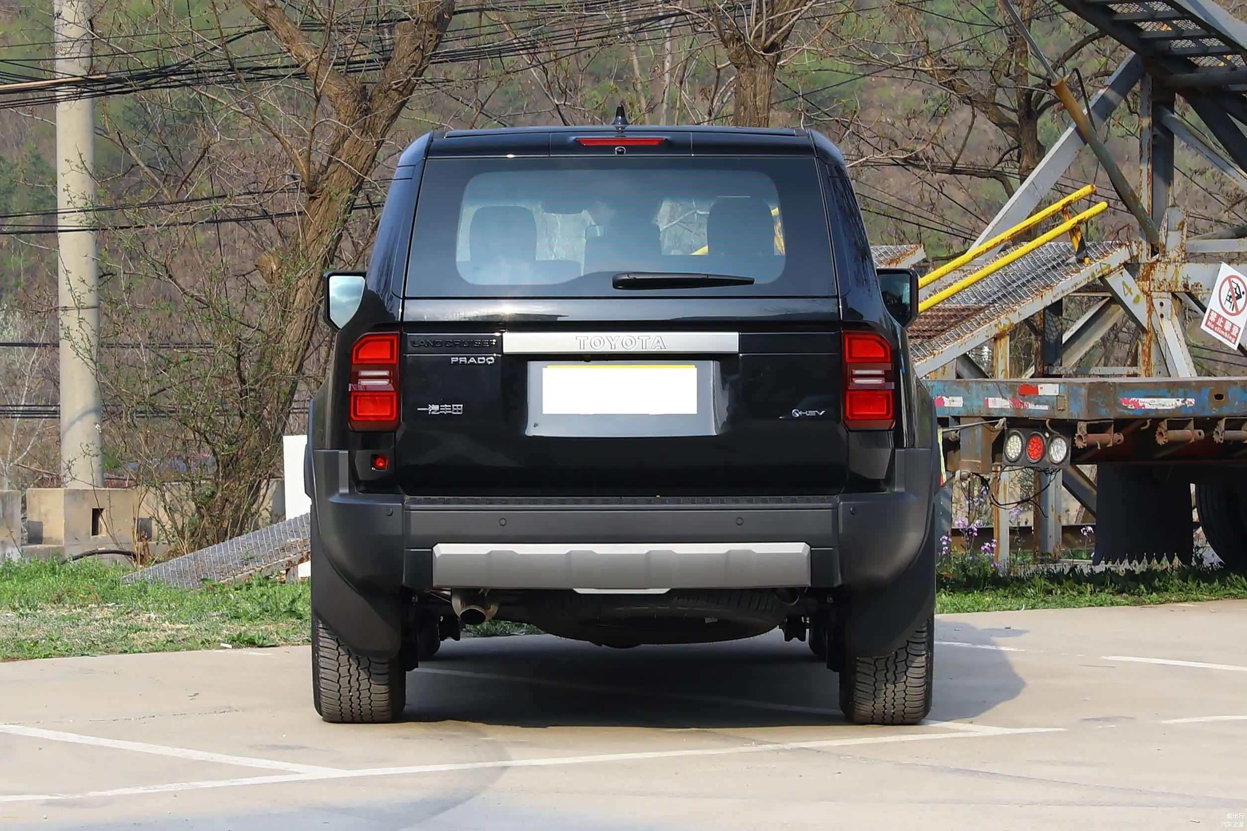 尾部方面,全新丰田普拉多同样表现出色。高大立体的尾部设计,纵向布局的红色方形尾灯,保留了越野车的原始韵味。厚重的黑色包围和银色护板,进一步增添了野性气息。尾门左下角标注的“一汽丰田”字样,以及右下角标注的“HEV”字样,彰显了该车的国产混动身份。