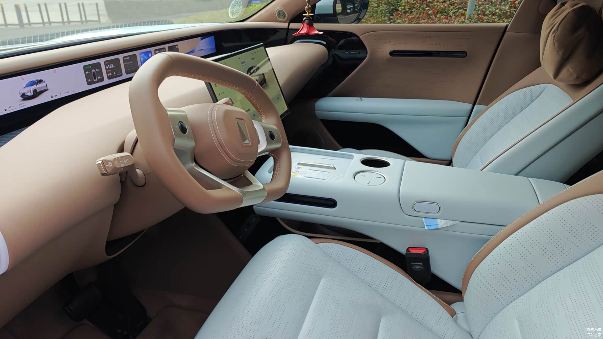 内饰是老图选择阿维塔07的关键,所谓内饰除了白棕色的确让人精神些之外,整个座椅造型、出风口设计、方向盘设计、远端屏设计从很多细节中能看出阿维塔设计师的一种追求:简约而精致。