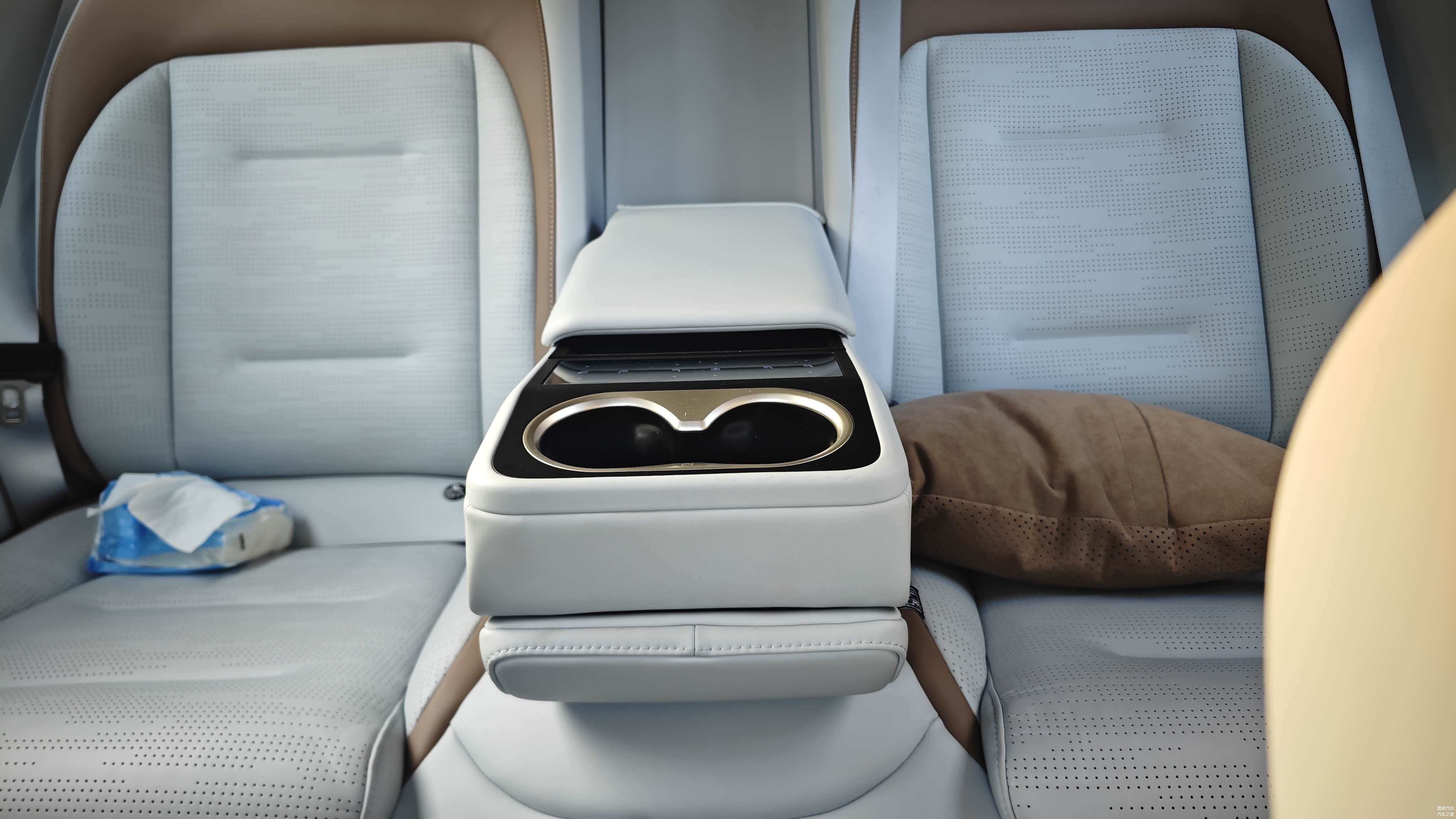 说这话是不是吹捧阿维塔?当然不是,事实就是如此,阿维塔07的内饰用料软皮覆盖很多,而且是软毛那种顶,nappa真皮的座椅,加上整体的设计,包括头枕的衬托式设计,中央通道的平直设计,宽大厚重,后中央扶手的“迈巴赫”式设计,的确是不错。