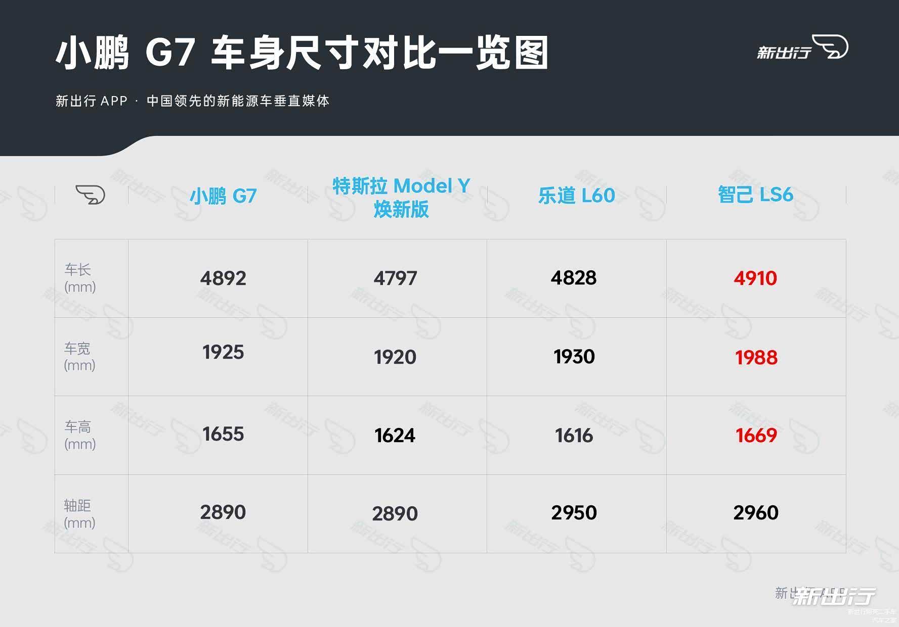 车身尺寸方面,小鹏 G7 的车长要比乐道 L60 以及焕新版 Model Y 都要长,但轴距和 Model Y 一致,要比乐道 L60 短一些。