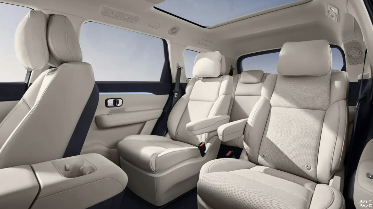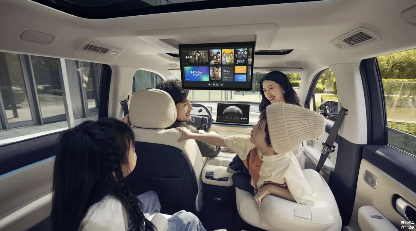 内饰方面,新车提供绾棕 润米、远山黛 润米两款配色。内嵌式仪表盘、12.3英寸副驾娱乐屏、15.6英寸车载影院中央吸顶屏三屏影音联动,展现出不俗的科技感。同时,新车还提供了流媒体内后视镜、主动式香氛系统、方向盘加热等。值得注意的是,该车还带50W手机无线充电、宽温域冷暖两用智能冰箱。