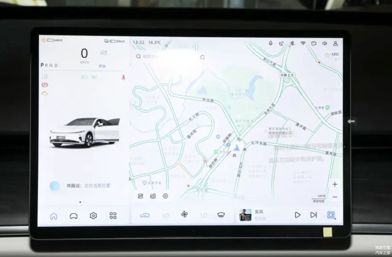 新车内饰用料以软性材质为主,局部加以仿木纹饰板包覆,触感偏生硬。同时,中控采用无仪表布局,而15.4英寸2.5K高清屏搭配高通骁龙8155芯片,带来不错的人机交互体验。另外,系统还内置CarLink/HUAWEI HiCar车机互联,进一步满足年轻人的用车需求。