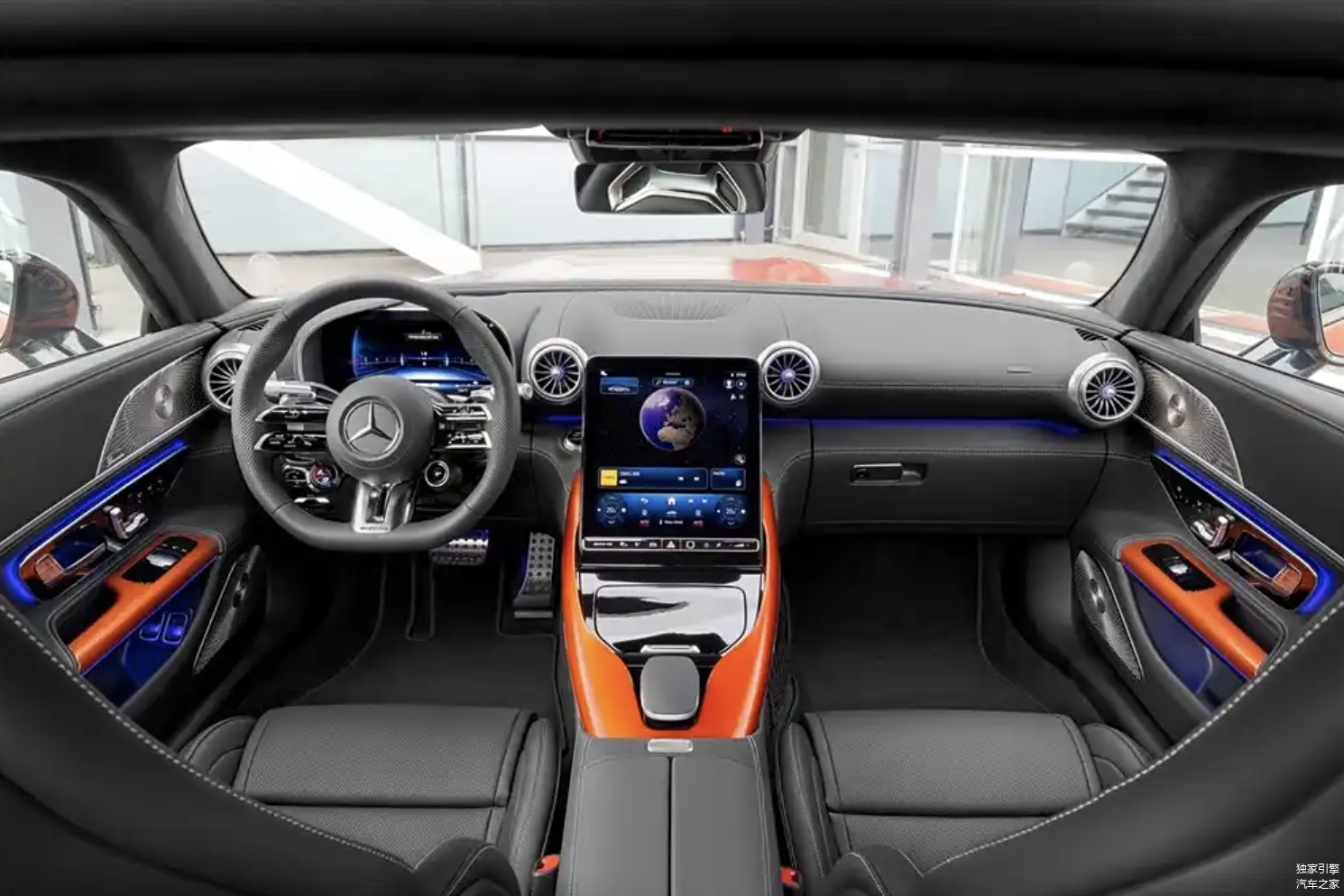 新车内饰延续了奔驰家族车型最新布局,12.3英寸液晶仪表、11.9英寸竖向中控屏以及AMG高性能方向盘。同时,MBUX智能人机交互系统+读心语音助理功能,支持实景穿越导航、CarPlay手机互联映射、主副驾语音识别控制、应用商城等功能;而智能领航辅助Pro,则提供ACC自适应巡航、LKA车道保持辅助、变道辅助、360°全景影像、自动泊车入位等功能。