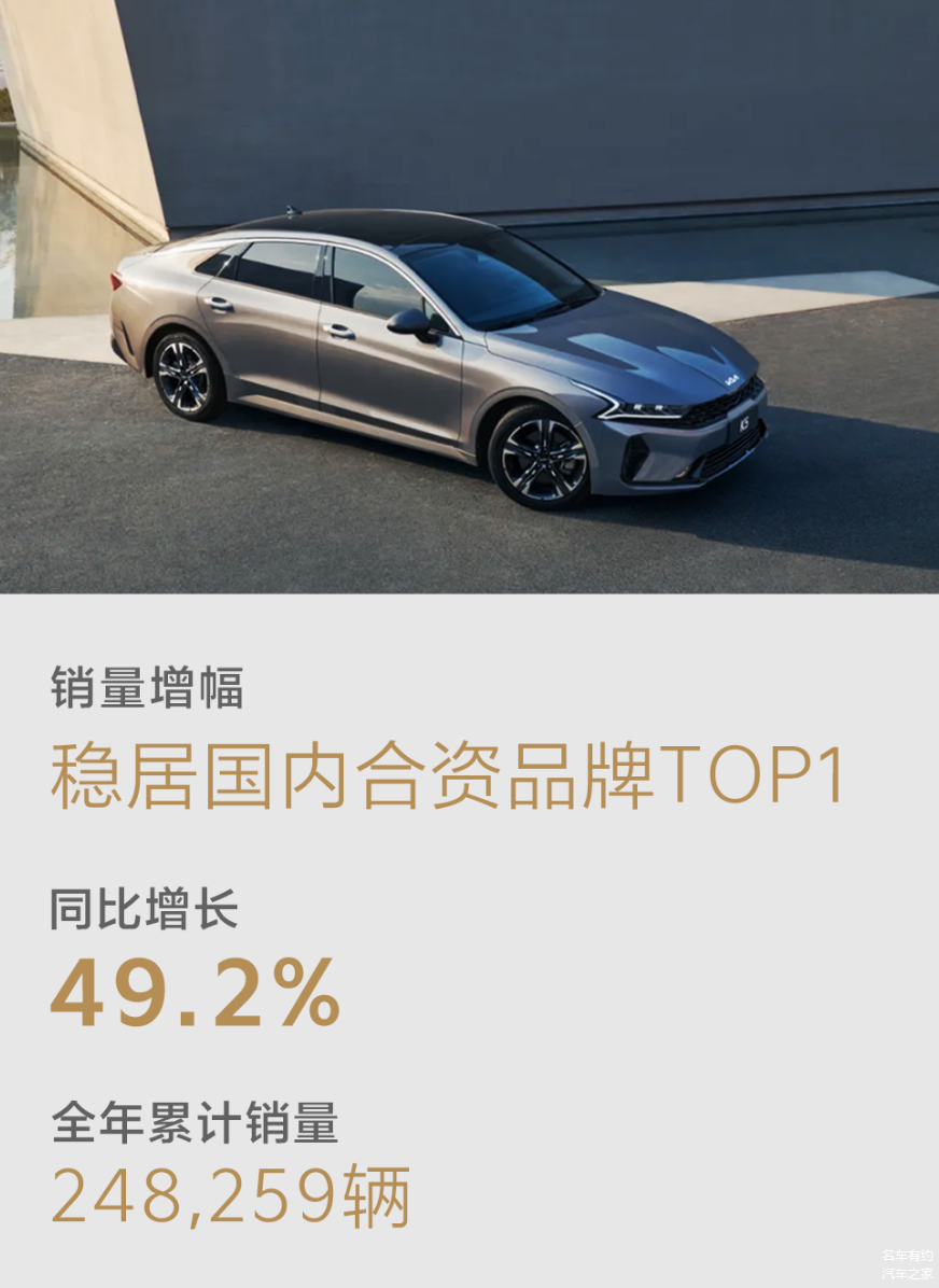 1月13日,起亚中国在上海举办了媒体答谢会。在答谢会现场,起亚汽车也展示了2024年战绩。始终践行“在中国,为中国”发展战略的起亚汽车,尽管面对内卷的2024年,依然交出一份漂亮的答卷,全球年销量近309万辆,创造历史最高年销售记录,同时悦达起亚的总销量也超24.8万辆,同比增长28.1%。由此可见,起亚汽车在市场上展现出强劲的竞争力。
