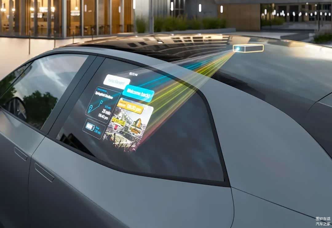 大陆集团在2025上首次展示其车窗投影显示解决方案。该技术将显示内容投射到车辆的后侧窗上,并可以为外部所见。当车辆停放时,它可以直接与周边环境通信并显示重要信息,例如电动车的充电量或车主喜欢的球队俱乐部标识,显示内容可轻松个性化。