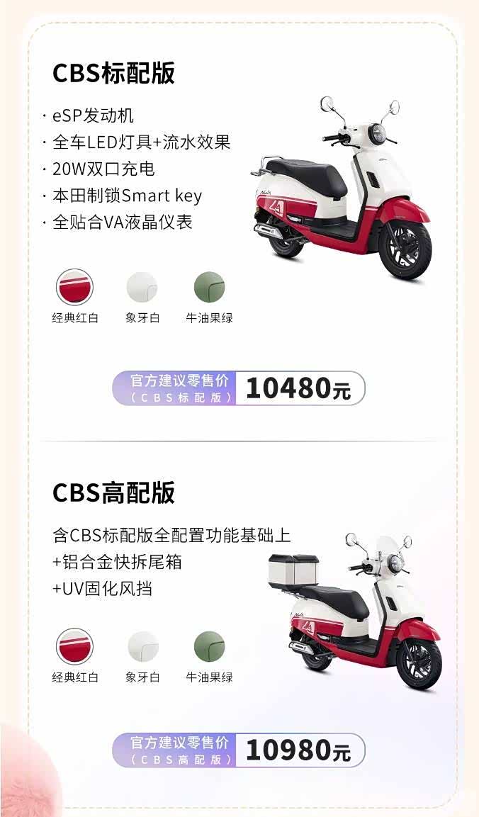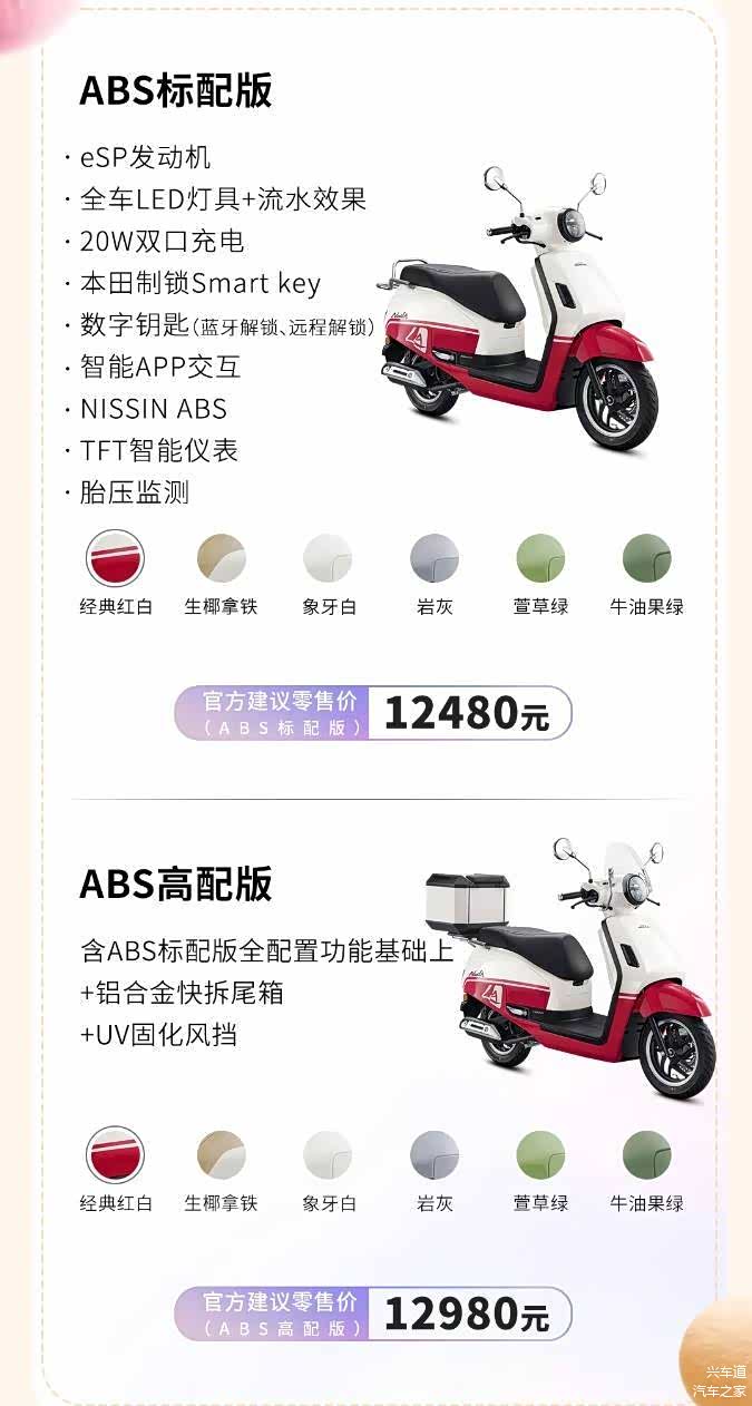4个配置 ABS尾箱护杠风挡版本 12980 ABS标配版 12480