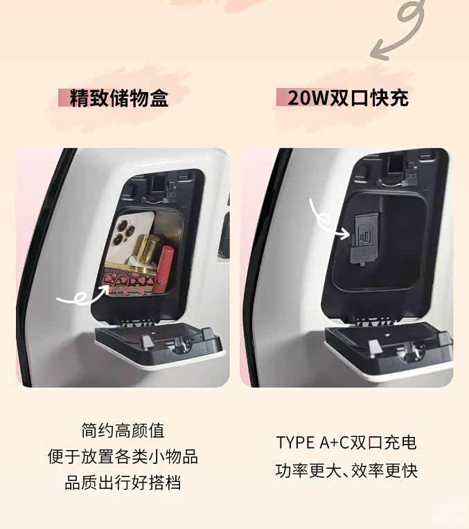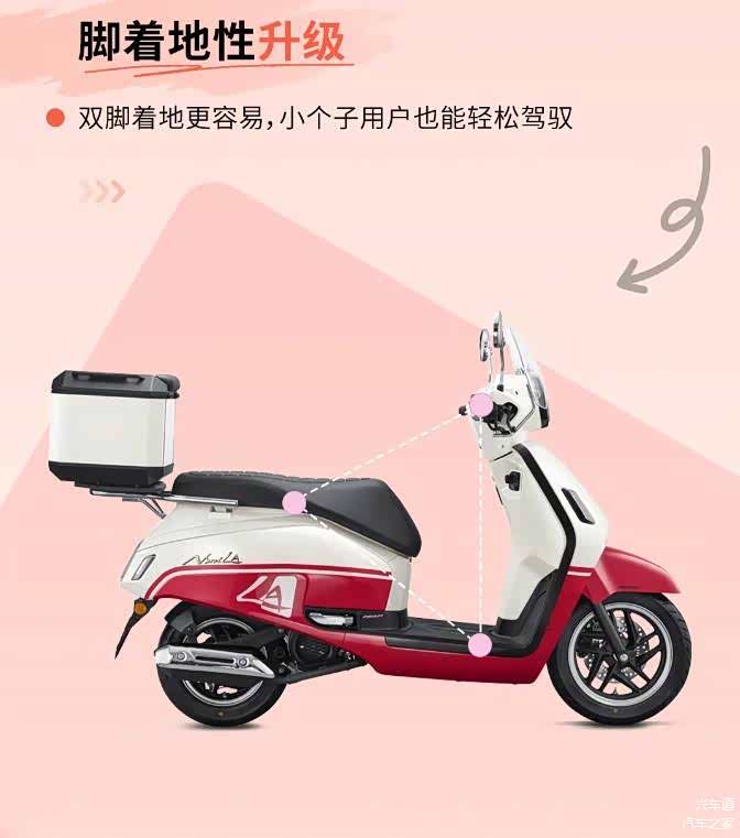 新款NS125LA的大容量座桶可以轻松放下3/4头盔,满足日常出行和收纳需求。精致的储物盒设计,简约又实用,方便存放各种小物品。此外,20W双口快充设计支持TYPE A+C两种接口,充电功率大,效率更高,确保你在路途中的电量充足。此外优化骑行三角,2025款NS125LA都致力于为车主提供舒适的体验。首先,双脚着地性得到了优化,小个子骑行者也能轻松驾驭。复古风格的沙发鞍座采用前部收窄设计,让骑行更为舒适,座垫前后微翘的设计也有效减少刹车和加速时的滑动,提升了驾驶的稳定性和安全感。265mm的超宽前脚踏设计让腿部活动更加自如,增加了置物空间,增加了出行的便利性。
