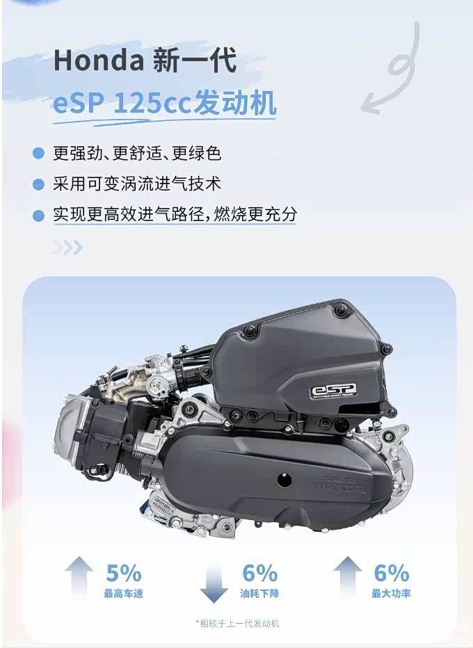 动力方面,本田NS125LA搭载的是全新一代的Honda eSP 125cc发动机,引入了可变涡流进气技术,燃烧更加充分,相较旧款燃油经济性表现更加出色。参数部分,该发动机最大功率7kw,最大扭矩10N·m;官方百公里综合油耗为1.9升,基于5.7升油箱,续航可以轻松达到250km。