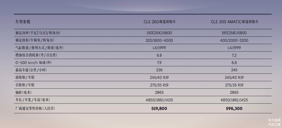 在国内市场,奔驰CLE敞篷轿跑车以进口形式引入销售,目前可选的同类型产品还有宝马4系敞篷轿跑车(售价:48.69万元起)、奥迪A5 Cabriolet(售价:48.48万元起)。那么在经过优化升级后,您觉得新款 奔驰CLE(图片 | 参数 | 询价)敞篷轿跑车怎么样?欢迎留言评论。