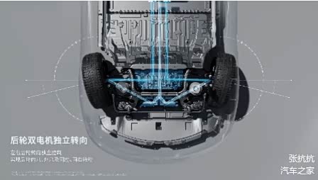 “易三方”可以实现后轴左右两轮的外八转动。当车辆遇狭窄侧方停车,狭窄停车位或直角弯道时,可通过圆规掉头功能解决,此时双后轮呈现“外八字”转动效果,利用后双驱动电机的差动控制,实现绕前轴圆规掉头,增加车辆的灵活性。