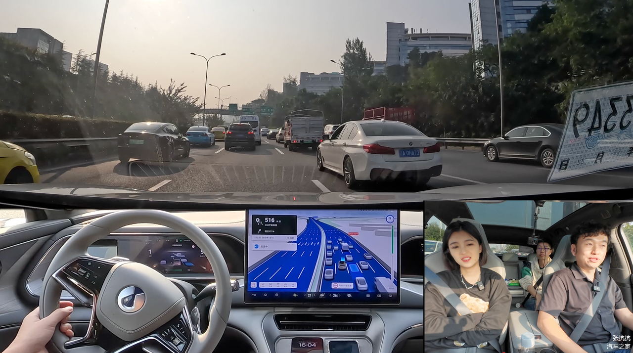 第二次体验是2024年5月,我驾驶比亚迪汉EV在上海来了100公里一镜到底,全程未接管。第一次体验N7的时候,记录了多处生涩之处发给了比亚迪工程师,半年后再体验汉EV的时候,已经全数改好了。
