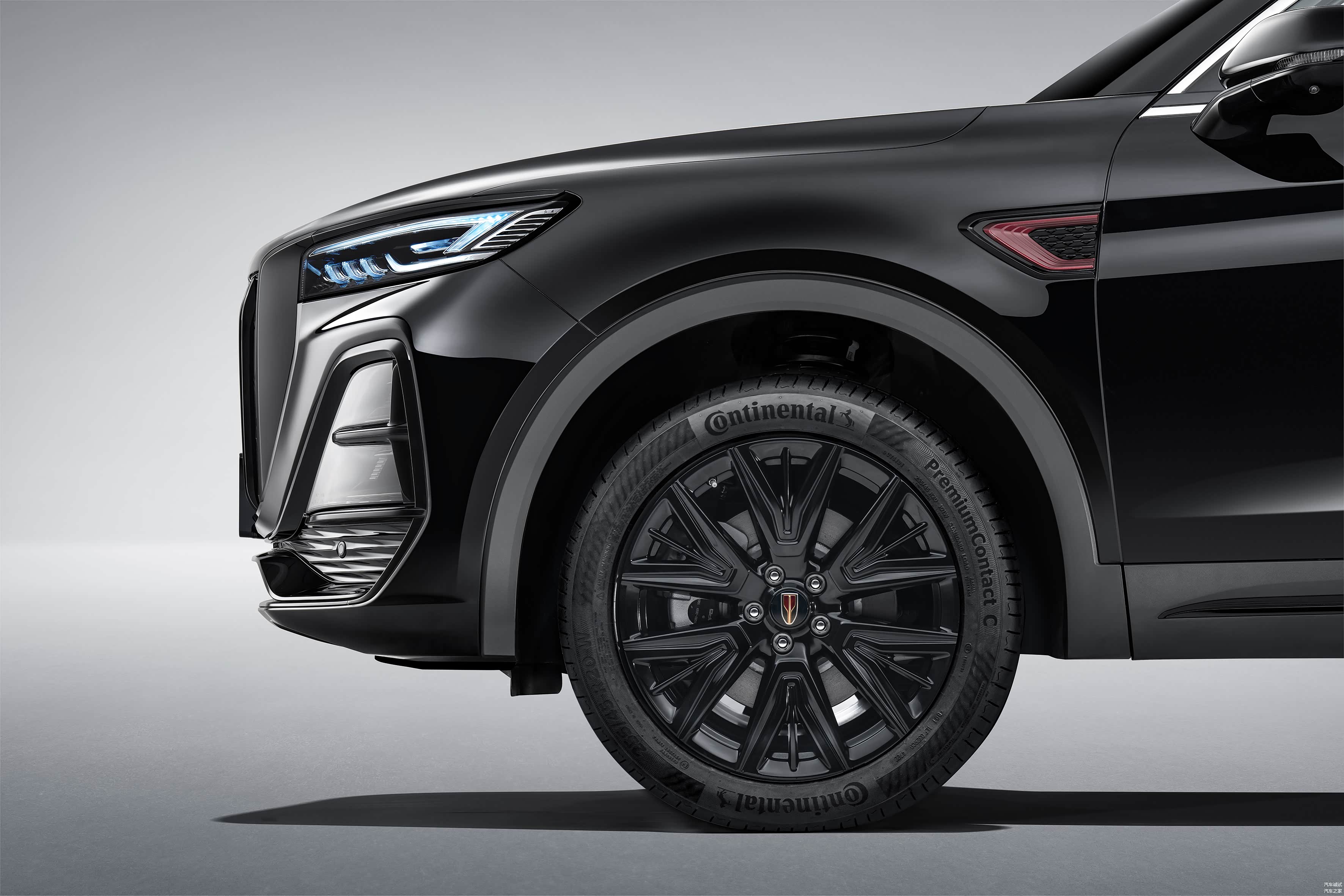 比如2025款红旗HS5最值得推荐的车型当属新增的两款玄影版车型,它们在旗享Pro版和四驱旗享Pro版的配置基础上分别增加了熏黑造型包。要知道以往红旗的车型更多是营造庄重豪华的气场,其实很少做此类黑化的风格。但这次在玄影版车型上我们不但可以看到全车熏黑的装饰条、轮毂、行李架、中网以及玄影版专属标识,甚至连发光旗标都做了黑化处理,设计十分前卫。并且两驱玄影版车型还额外升级了20英寸轮毂,更凸显了性价比。