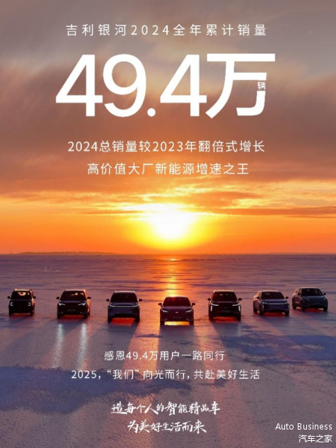 基于2024年的表现,吉利银河为2025年制定了更高的目标——年销量百万辆。如果成功,这一目标不仅是银河系列在三年内实现的突破,更将标志着吉利在新能源领域的深耕和全面崛起。