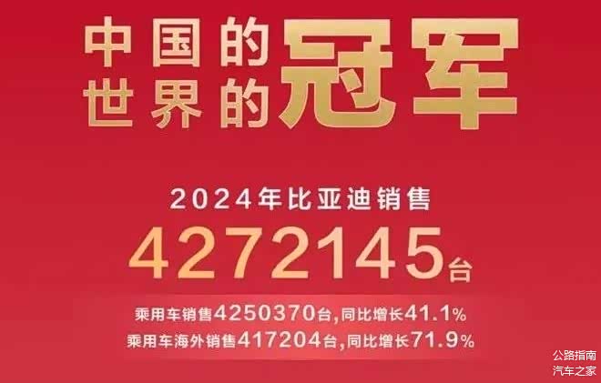 2024年比亚迪实现全年销售新车427万台的销量神话,连续3个月销量突破50万辆,放眼全球都是前5的水平。