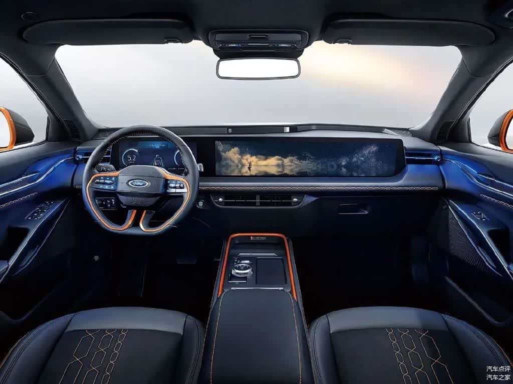 作为福特品牌下的一款跨界SUV,EVOS在外观方面确实有着不少亮点,犀利的LED大灯组、层次感鲜明的大溜背造型,以及经过熏黑处理的20寸轮毂,展现出强烈的运动气息。而隐藏式门把手与贯穿式尾灯的巧妙设计,又为整车增添了一抹时尚气息。其长宽高分别是4920/1920/1600 mm,轴距2945mm。内饰方面,全系标配12.3英寸液晶仪表和27英寸4K高清中控屏组成长达1.1m的联屏,内置SYNC 2.0智行互联系统,支持面部识别、手势识别以及OTA升级等功能,无论是尺寸、清晰度,还是实用性都表现不错。