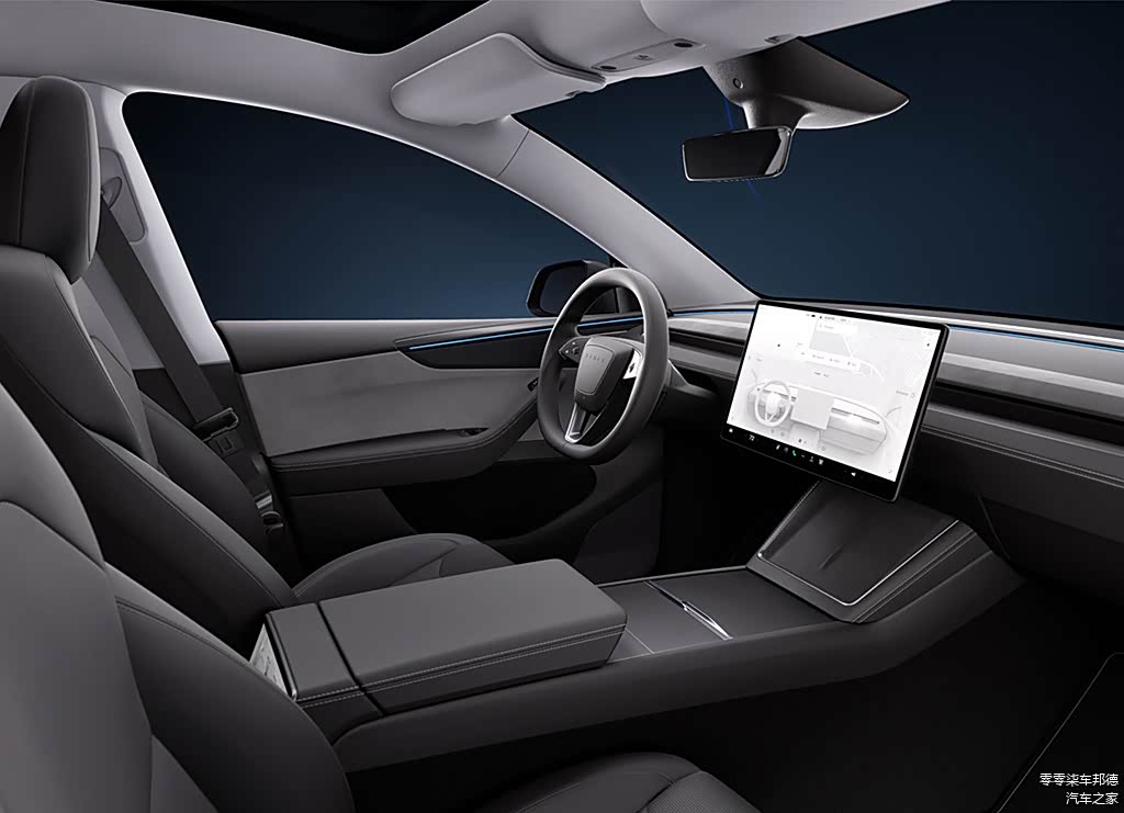 内饰方面,新款Model Y内饰风格一如既往简约,笔者个人觉得还是那个“毛坯房”,不过这次采用了环绕式氛围灯设计,提升了车内的高级感。另外,其配备了15.4英寸中控屏和后排8英寸娱乐屏幕,新增前排座椅通风功能,后排座椅也进行了改进,不仅加长了坐垫,增加了头枕的宽度,还提供了电动调节功能,为后排乘客带来了更舒适的乘坐体验。