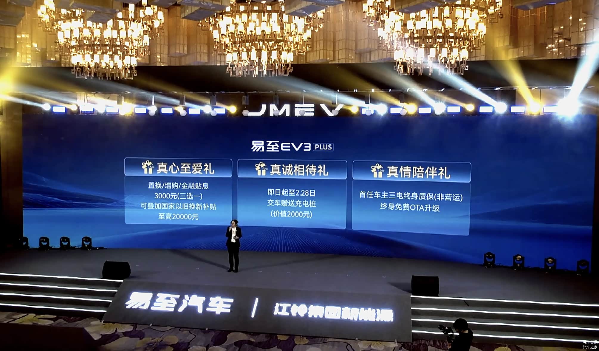 近日,江铃集团旗下易至汽车正式推出了全新车型——易至EV3 Plus,共推出2款车型,售价分别为6.28万与6.68万。新车提供置换、增购、金融贴息3000元(三选一),可叠加国家以旧换新补贴至高2万元。这款备受瞩目的小型纯电动SUV以其亲民的价格、实用的配置和出色的续航能力,正式开启了城市出行的新选择。作为易至品牌在新能源领域的又一力作,易至EV3 Plus不仅在设计上进行了全面升级,更在性价比上进行了显著提升,为消费者带来了全新的出行体验。