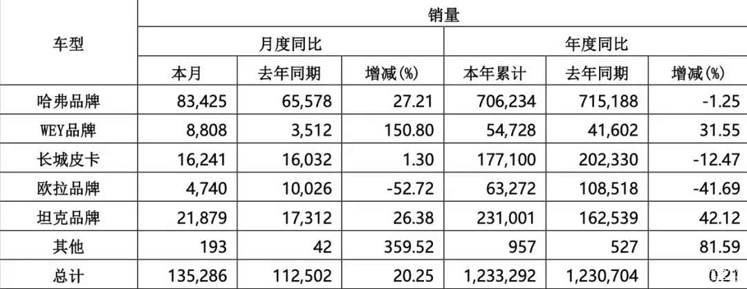 说到长城汽车总是充满遗憾,想当年坐拥“北哈弗南吉利”的称号,再看看如今,年销量远低于比亚迪、吉利、奇瑞、长安,长城汽车2024年销售新车超123万辆,海外销量占比近1/4,几乎与2023年销量持平,2024年其销售目标为190万辆,实际完成率仅64.91%。