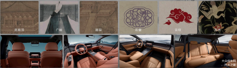 在内饰方面,王朝网也从中式建筑美学及东方生活哲学中获得智慧和指引。采用庑殿顶、广袖、踏跺等诸多中式建筑元素,为消费者带来了更加具有文化内涵和韵味的用车体验。这些设计不仅提高了产品的品质和用户体验,还为消费者带来了更加丰富的文化享受和精神寄托