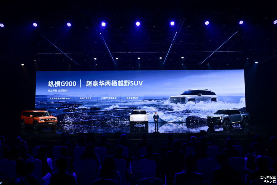 和前面两款车不同,纵横G900搭载的动力系统是纵横两栖黄金增程CEM-O。
